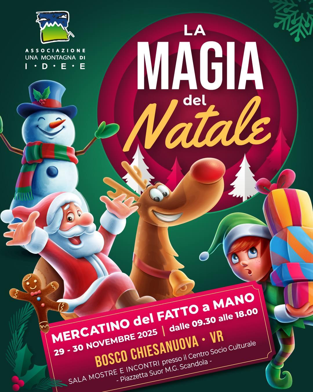 Saturday 29 and Sunday 30 November the magic of Christmas arrives in Bosco Chiesanuova! Handmade market at the exhibition and meeting hall of the socio-cultural center in Piazzetta Suor M. G. Scandola.