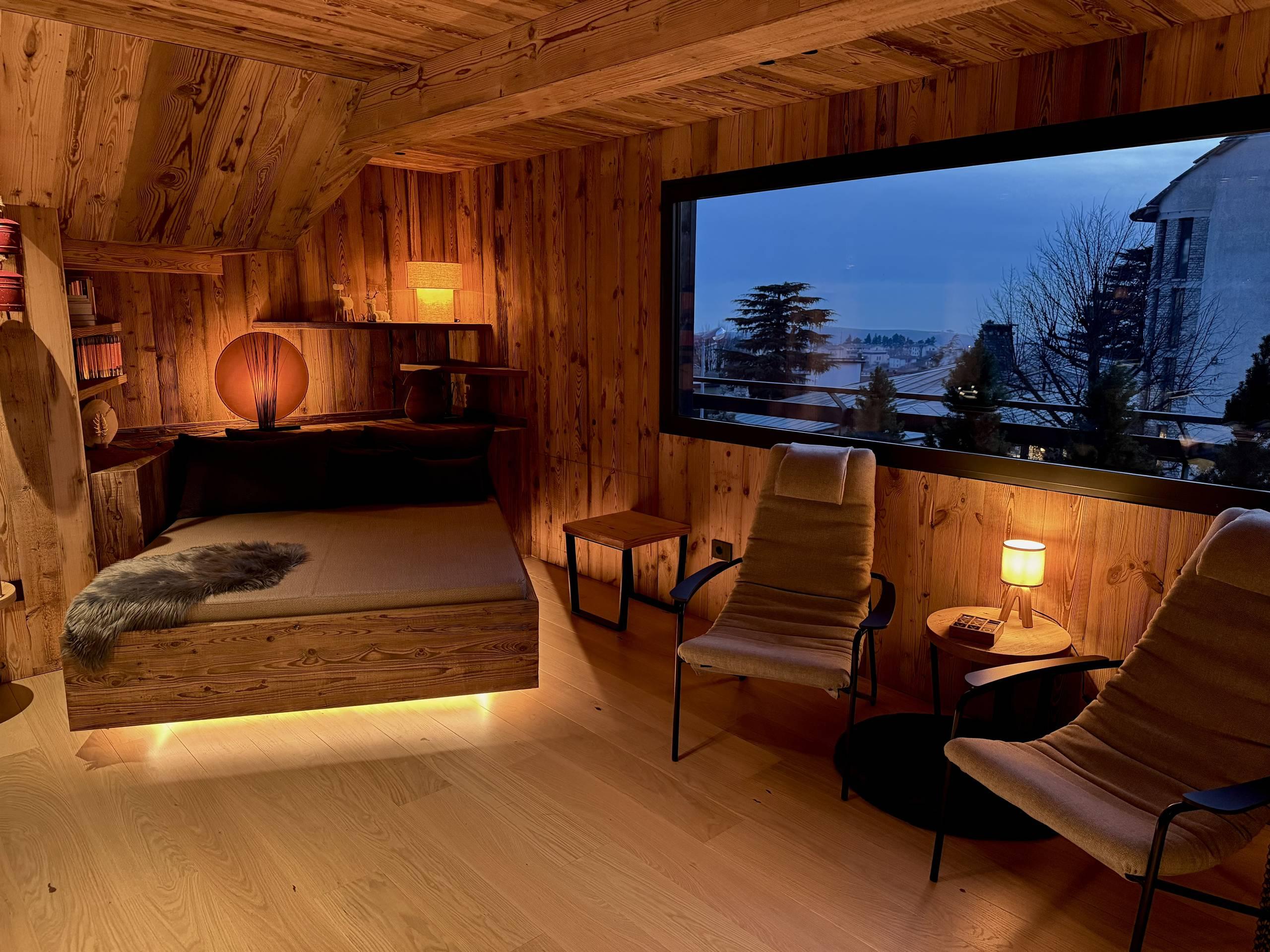 It is a quiet place, designed like a clearing in the woods, with wood, typical mountain plants, and all the comforts of the Eco-Lodge.
