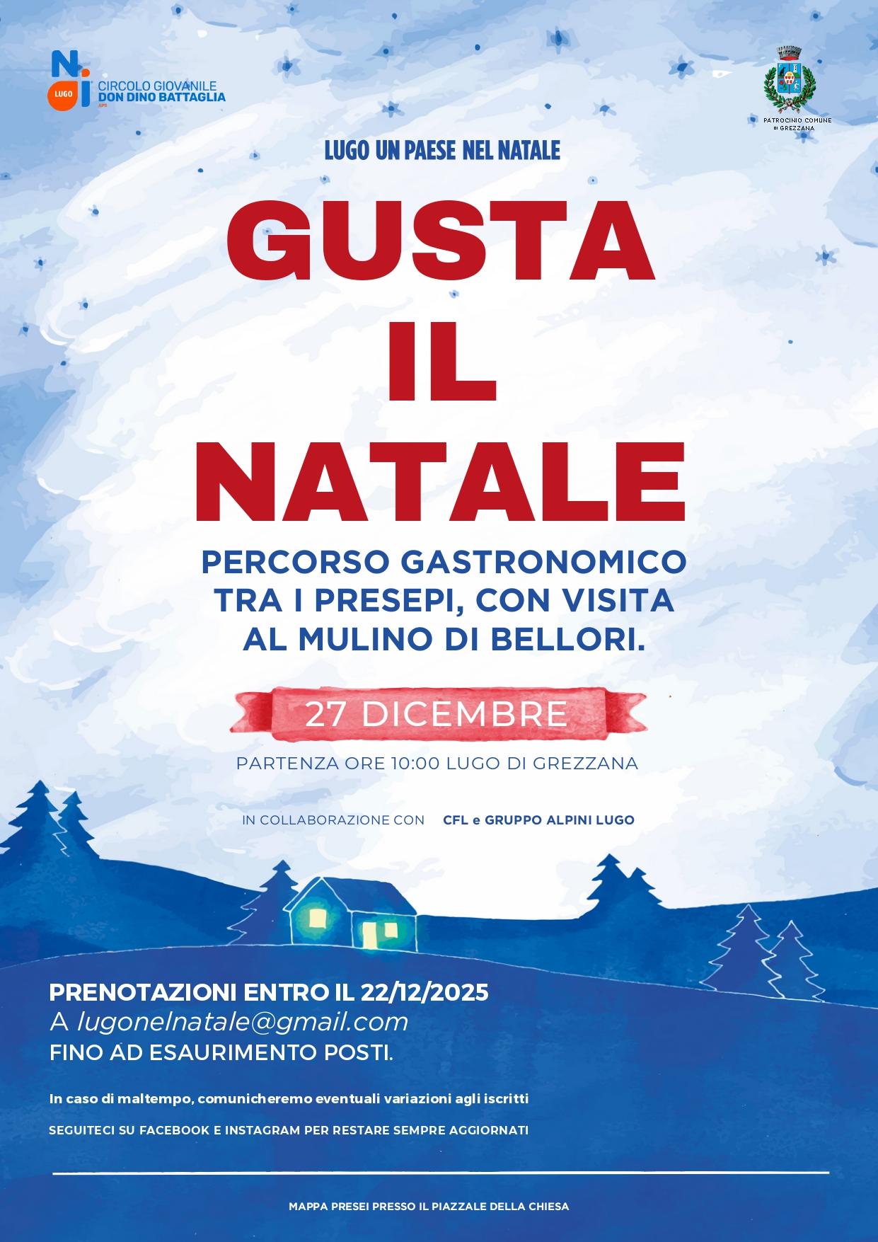 PRENOTAZIONI ENTRO IL 22/12/2025 A lugonelnatale@gmail.com FINO AD ESAURIMENTO POSTI
