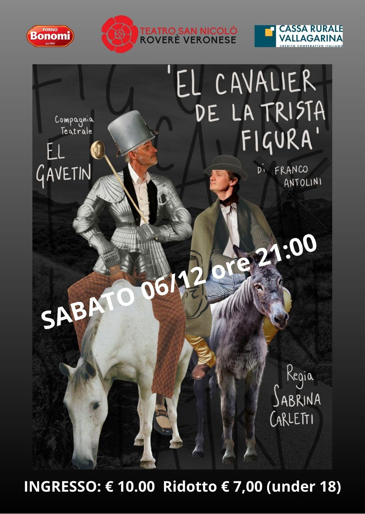 Le fantasie del leggendario cavaliere “Don Chisciotte de la Mancia” di Miguel de Cervantes prendono vita nell’originale restituzione di Franco Antolini “El Cavalier de la trista figura”, alternando sul palcoscenico la narrazione allegra, spassosa, divertente delle gesta del protagonista e l’interpretazione del personaggio stesso che, esprimendosi in uno spagnolo maccheronico, è reso bizzarro, grottesco e di sicura efficacia comica.