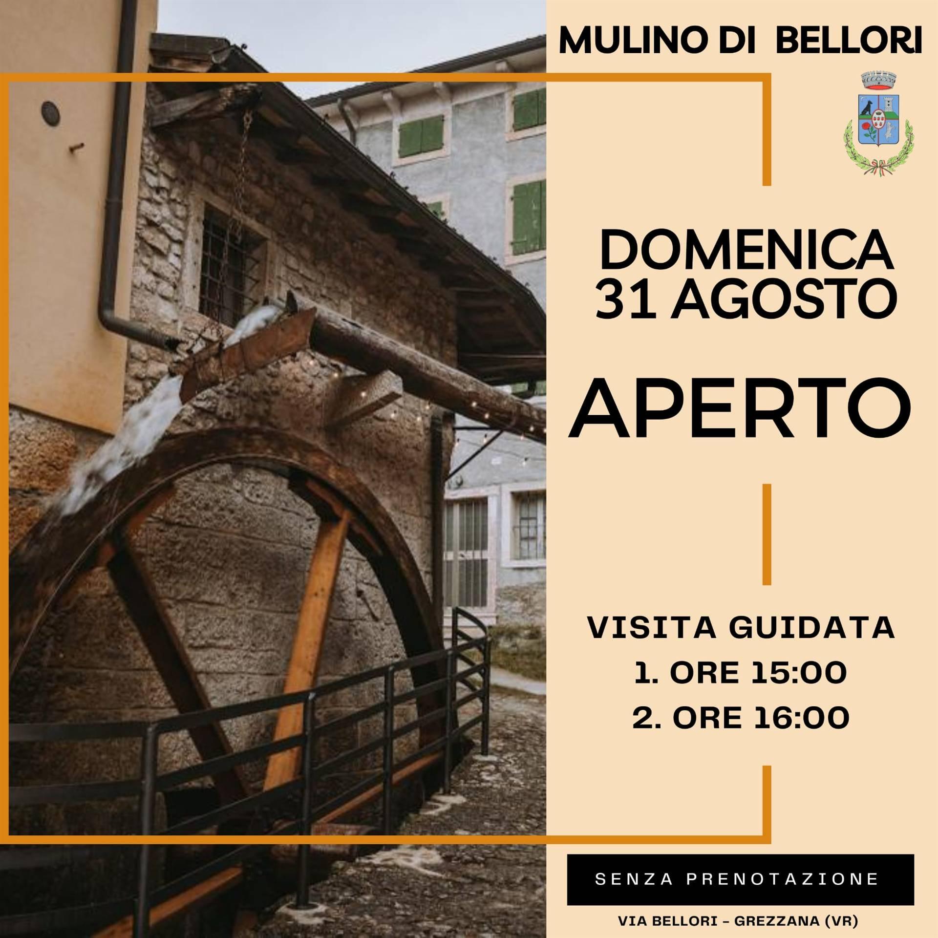 Domenica 31 Agosto visita guidata alle ore 15:00 e 16:00 al Mulino di Bellori.